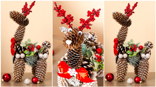 DIY НОВОГОДНИЕ ПОДЕЛКИ из ПРИРОДНЫХ МАТЕРИАЛОВ. ОЛЕНЬ своими руками