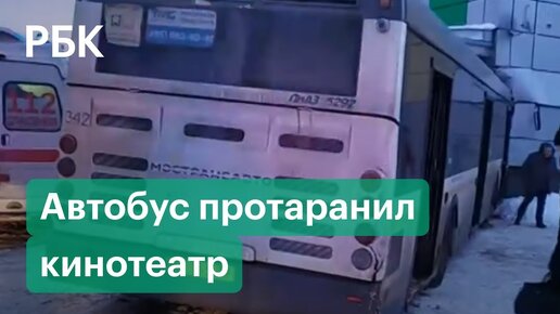 Пассажирский автобус протаранил здание кинотеатра в Электростали. Первые кадры с места ДТП