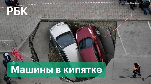 Две иномарки провалились в яму с кипятком в Новосибирске после коммунальной аварии