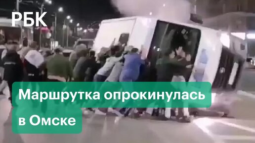 Очевидцы ДТП толпой подняли перевернувшуюся маршрутку в Омске
