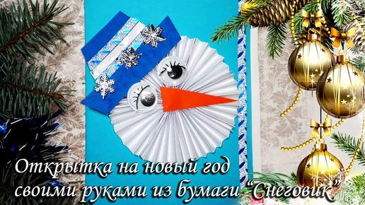 Новогодние открытки своими руками 2022. 3Д открытка Снеговик. Поделки для детей на Новый год!