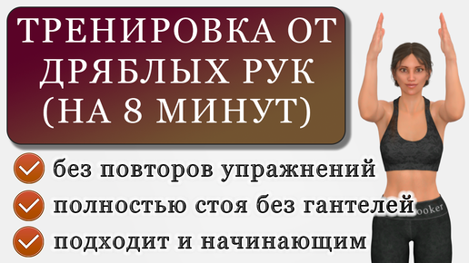 8 минут от дряблости рук: несложная тренировка стоя без гантелей (без повторов упражнений)