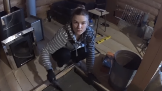 Установка печи на деревянный пол. Дело идет быстрее, когда жена помогает