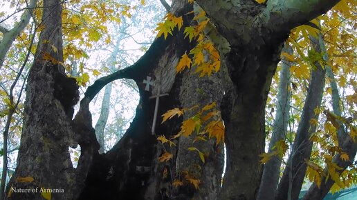 Саригюх - часовня у дороги и 1700-летнее дерево платан