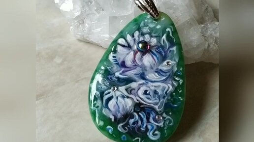 Кулон с росписью по камню " Цветы Ангела " Лаковая миниатюра. Катерины Аксеновой.