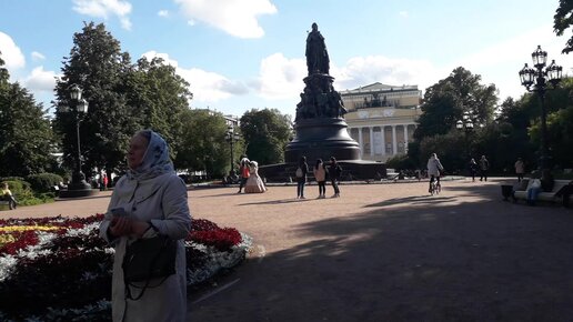 Санкт-Петербург, прогулки по Невскому проспекту, памятник Екатерине. Где можно сфотографироваться Петром Первым и получить шарж в подарок.