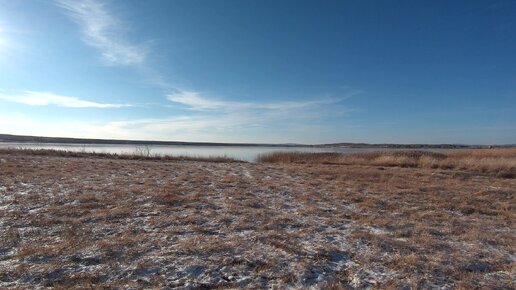 Природа Урала. Заснеженное поле и первый лёд на пруду