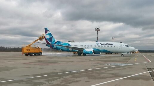 Смотрите антиобледенительную обработку самолета в Домодедово. Деайсинг