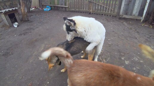 Прикольный хаски. Собаки деревенского двора.