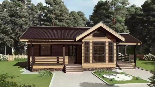 Проект каркасного одноэтажного дома 8٭9 с крыльцом и террасой под отдельными крышей “Строй и Живи“