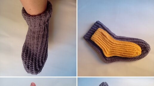 Вяжем ЧЕТВЕРТУЮ четверть носка крючком.
