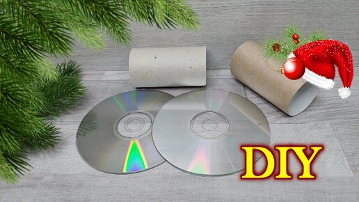 Взяла старый DVD диск, втулку от бумаги и сделала красивый Новогодний декор за 5 минут. ПРОСТО, БЫСТРО и КРАСИВО.