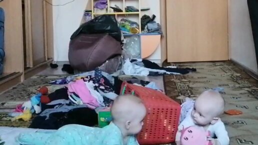 Что делают восьмимесячные двойняшки, пока мама делает сезонную уборку