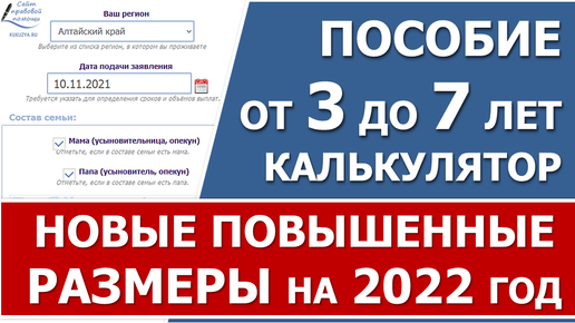 Выплата пособия от 3 до 7 лет. Новые повышенные размеры пособий в 2022 году