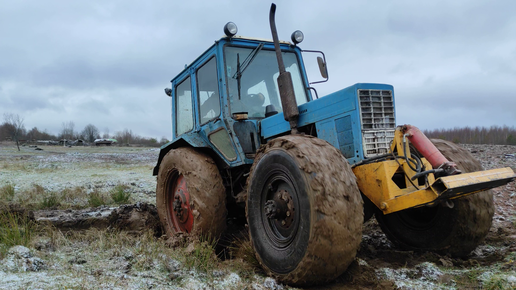 Мтз -82 с самодельным мостом 4х4 тащит плиту, месит грязь