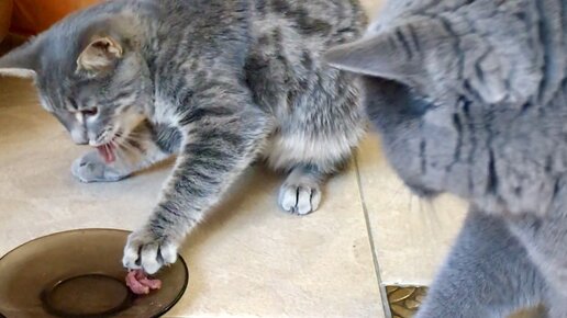 Британский кот просит сырое мясо. Но он не ожидал, что придется поделиться