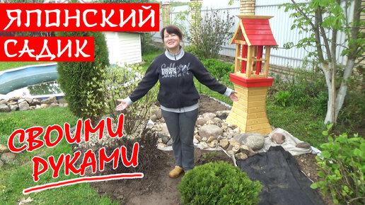 Цветник ЯПОНСКИЙ САДИК. Сухой ручей, японский фонарь и высадка растений. Все СВОИМИ РУКАМИ.