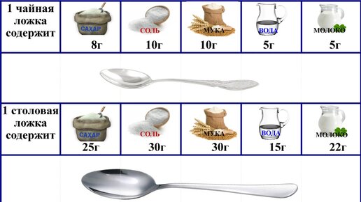 Мера в ложках.Сколько грамм содержит 1 столовая и чайная ложки