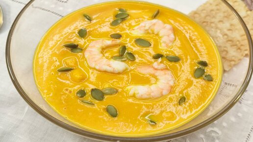 Тыква со сливками и креветками. Нежнейший суп- пюре.