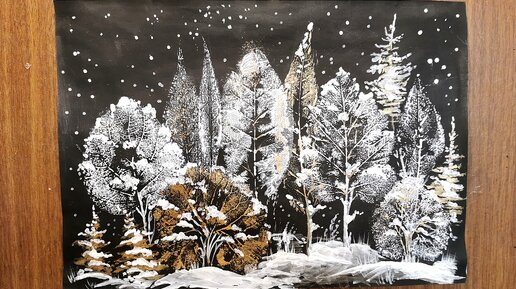 Как с помощью пары листьев просто нарисовать зимний лес, потратив 10 минут и не умея рисовать