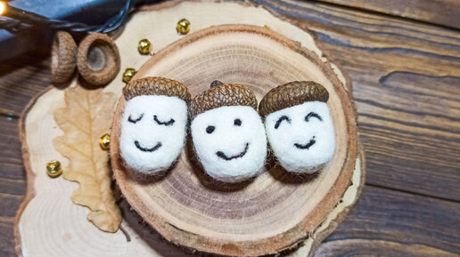 Ещё одна необычная идея, как использовать шляпки от желудей и шерсть
