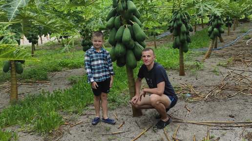 Показываю, как растет папайя на Мальдивах, и еще одного геккона