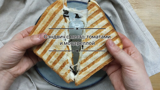 Очень вкусный сэндвич на завтрак или перекус. С песто, томатами и моцареллой. Хрустящий хлеб, теплые помидоры и тянущийся сыр!
