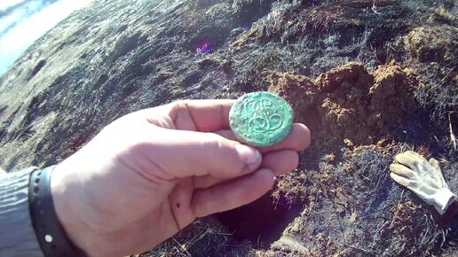 Коп монет по спаленной траве, Выкатился пятак