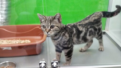 Грустные животные в зоомагазине. Шикарный кот и пушистый щенок.