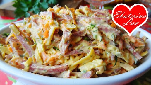 4 ингредиента и 10 минут! БЫСТРЫЙ ПРАЗДНИЧНЫЙ САЛАТ "Обжорка" с яичными блинчиками!