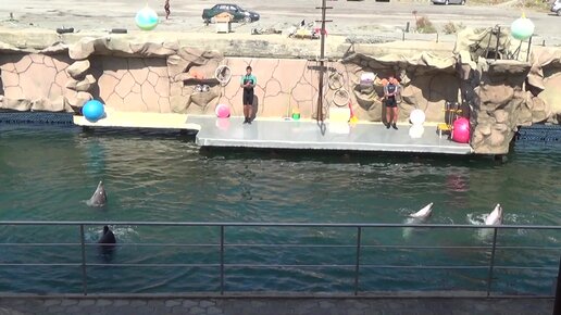 Дельфины в Большом Утрише. Показываем динамичное выступление дельфинов, которое вызвало яркие эмоции и восторг зрителей