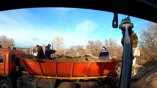 Разгружаем камаз мдк пескачь экскаватором terex и в ручную.