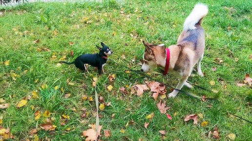 Алиса с Розочкой носятся по лужайке лая и рыча друг на друга