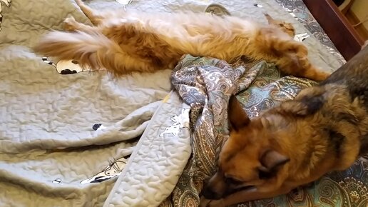 Мейн-кун ластится к собаке, а она не в восторге и хочет играть