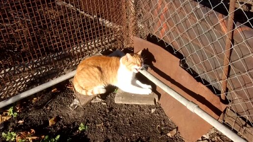 Бездомный рыжий котяра по кличке Рыжик греется на солнышке.