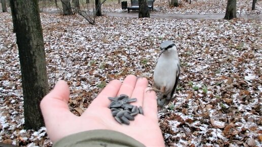 Белка проверила чем я кормлю синиц, а ещё мне на ладонь сел поползень