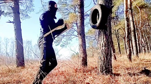 Тонфа: отработка комбинации диагональных ударов по покрышке. (танрен)