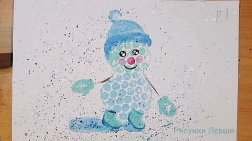 Интересный способ нарисовать снеговика с помощью пузырчатой плёнки