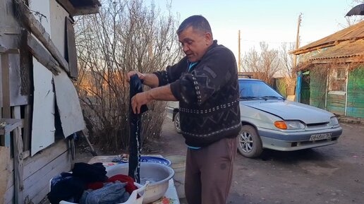 Муж стирает одежду жены , пока жена отдыхает .