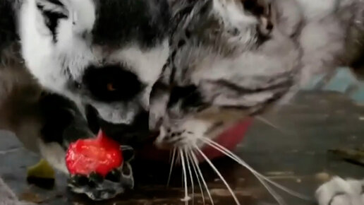 Три лемура приняли в стаю полосатого кота