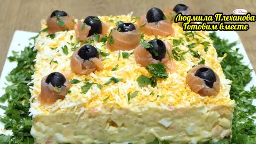 Такой праздничный салат с солёной сёмгой (горбушей) можно сделать за 10 минут, а гости в новогоднюю его по достоинству оценят