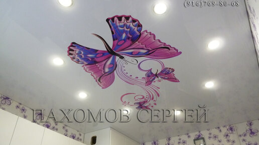 натяжные потолки в Калининец. Натяжной потолок с фотопечатью бабочка.