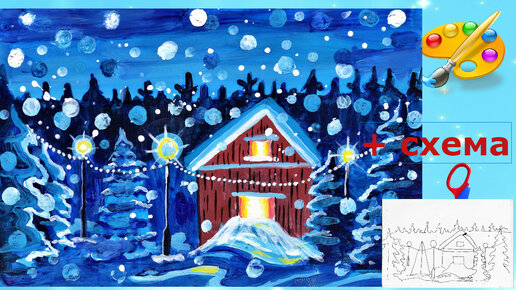 Как нарисовать зиму поэтапно гуашью