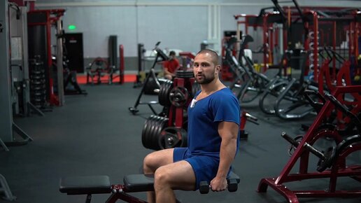 Подъем гантелей в стороны сидя
