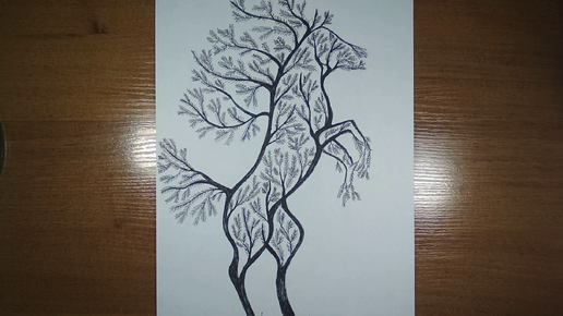 Рисунок ручкой. Лошадь-дерево. Релакс