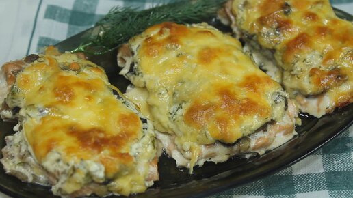 Рыба на праздник. Горбуша запеченная с луком и грибами.