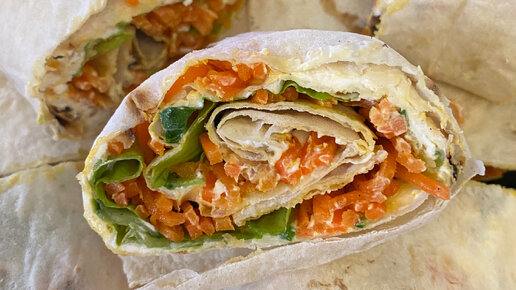 РУЛЕТЫ ИЗ ЛАВАША С КОРЕЙСКОЙ МОРКОВЬЮ. УКРАСИТ ЛЮБОЙ ПРАЗДНИЧНЫЙ СТОЛ.