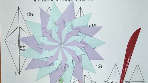 Двойная звезда-снежинка в технике оригами