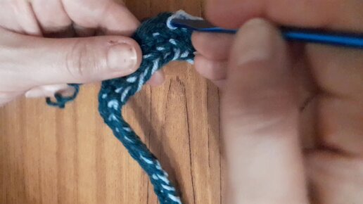 Показываю переход от одного цвета пряжи к другой на примере шапки.