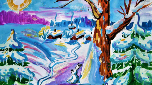 Как нарисовать красивый зимний пейзаж для начинающих. С объяснением.